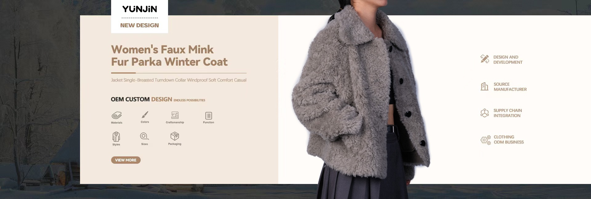 Parka de piel sintética de alta calidad YUNJIN, cuello vuelto, cremallera, informal, para exteriores, lona de oveja, botón de punto, logotipo personalizado, abrigo de invierno