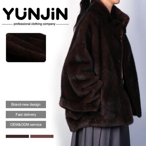 YUNJIN, chaqueta informal de nuevo diseño para mujer, abrigo de invierno de piel de visón sintética, cuello mandarín, manga larga, bolsillo a presión, moda suave y cálida
