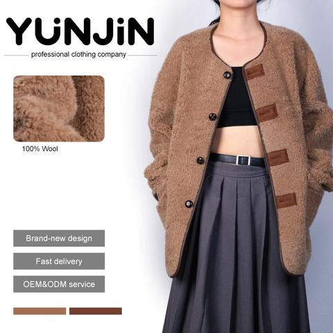 Chaqueta de invierno elegante para mujer YUNJIN, abrigo corto de lana transpirable de nuevo diseño con estilo informal de un solo botón