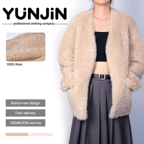 YUNJIN, nuevo diseño, abrigo de piel de lana con botones de garra para mujer, chaqueta de invierno para mujer, abrigo de peluche de esquila de oveja Real para niñas